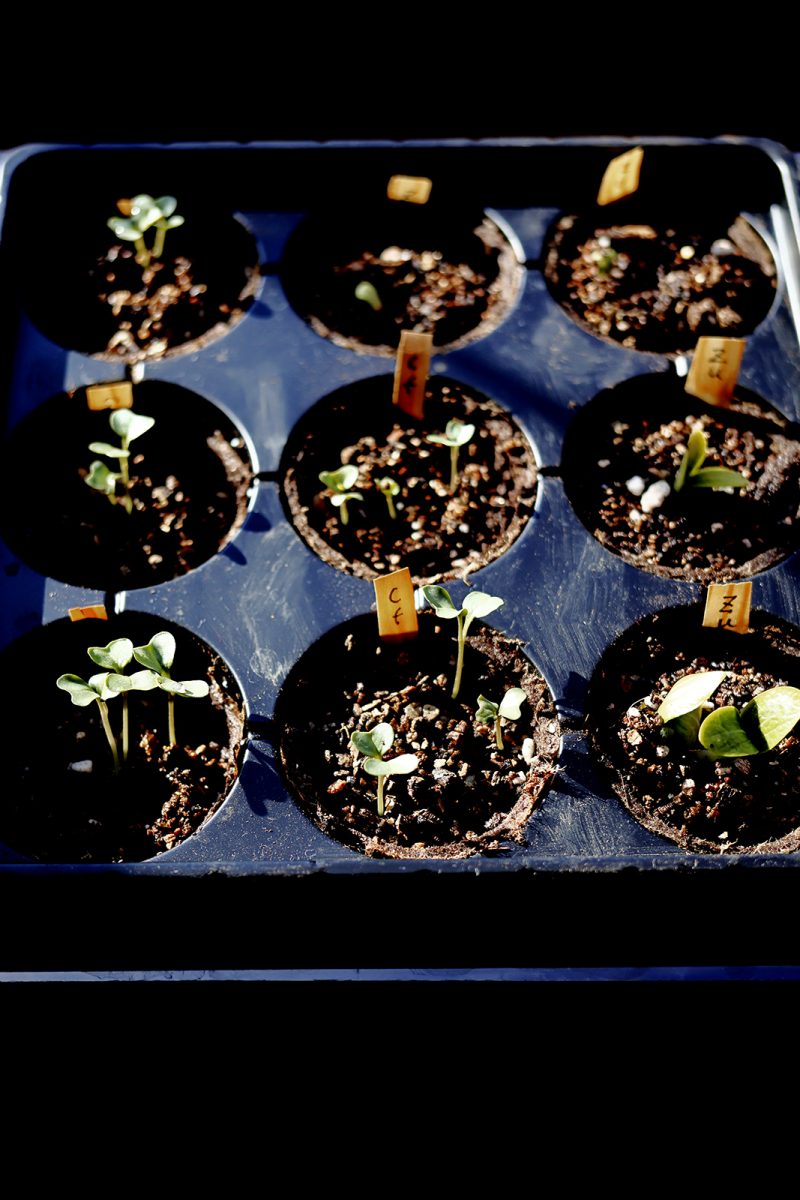 ひと月早く、種まきをした。近年の夏は植物にもきびしい。早めに撒いて早めに収穫を狙っている。が、寒いと発芽しない。屋内の窓辺にパレットを置いて毎日観察。食用でない植物にはこれほど執着しない。左からカリフラワー、ズッキーニ、絹サヤ、バターナッツカボチャ、チコリ。